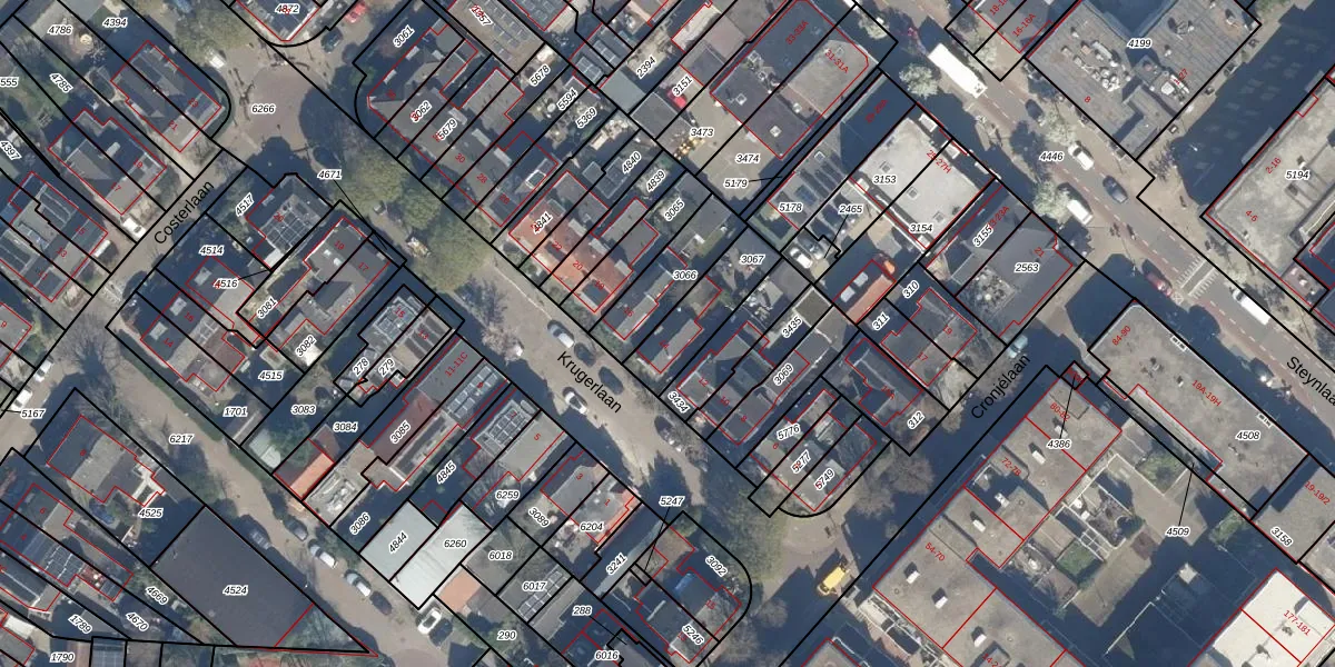 Het perceel waarop Krugerlaan 14 staat heeft een oppervlakte van 197 m². Dit is een middelgroot perceel. De perceeloppervlakte wordt geregistreerd door het Kadaster. Gedetailleerde informatie over de maten van dit perceel kunt u vinden in het rapport Kadastrale kaart met maatvoering van Krugerlaan 14.