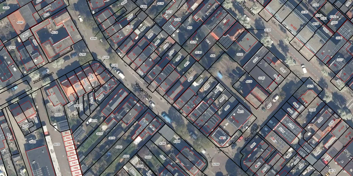 Het perceel waarop Krugerlaan 52 staat heeft een oppervlakte van 192 m². Dit is een middelgroot perceel. De perceeloppervlakte wordt geregistreerd door het Kadaster. Gedetailleerde informatie over de maten van dit perceel kunt u vinden in het rapport Kadastrale kaart met maatvoering van Krugerlaan 52.
