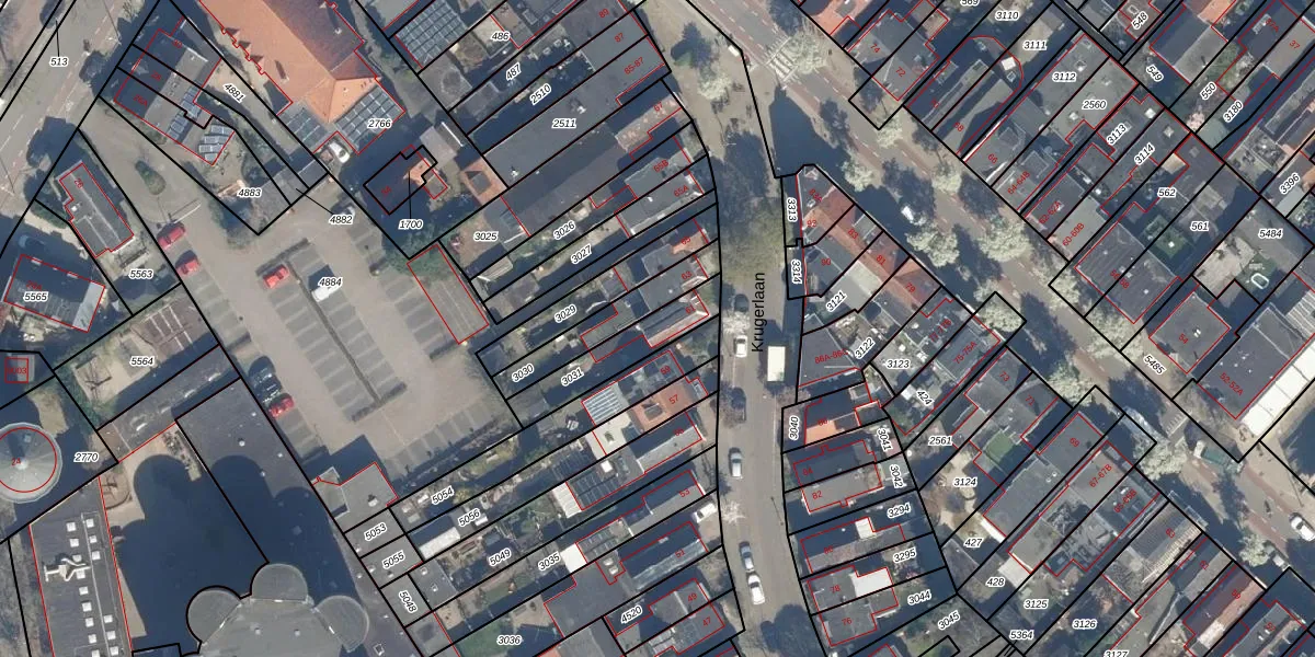 Het perceel waarop Krugerlaan 61 staat heeft een oppervlakte van 202 m². Dit is een middelgroot perceel. De perceeloppervlakte wordt geregistreerd door het Kadaster. Gedetailleerde informatie over de maten van dit perceel kunt u vinden in het rapport Kadastrale kaart met maatvoering van Krugerlaan 61.