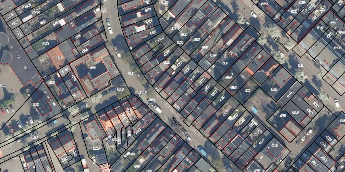 Het perceel waarop Krugerlaan 64 staat heeft een oppervlakte van 155 m². Dit is een middelgroot perceel. De perceeloppervlakte wordt geregistreerd door het Kadaster. Gedetailleerde informatie over de maten van dit perceel kunt u vinden in het rapport Kadastrale kaart met maatvoering van Krugerlaan 64.
