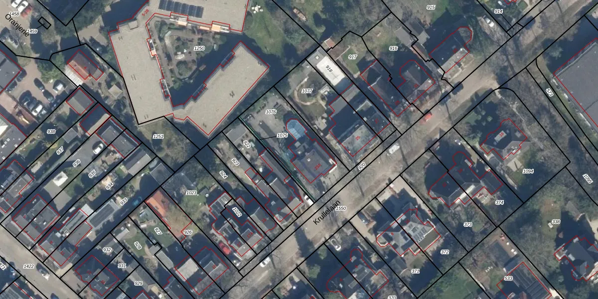 Het perceel waarop Krullelaan 23-A staat heeft een oppervlakte van 590 m². Dit is een groot perceel. De perceeloppervlakte wordt geregistreerd door het Kadaster. Gedetailleerde informatie over de maten van dit perceel kunt u vinden in het rapport Kadastrale kaart met maatvoering van Krullelaan 23-A.