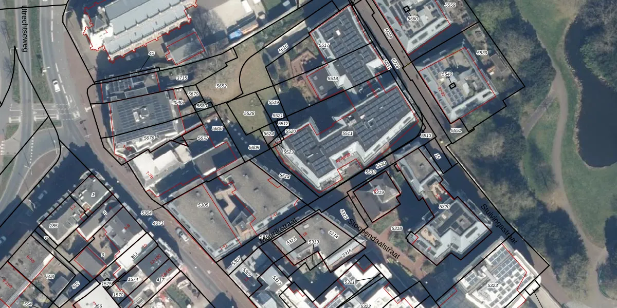 Het adres ligt op het perceel ZEI00-M-5511, dat zich in de kadastrale gemeente Zeist bevindt. Het perceel is kleiner dan gemiddeld in Zeist. Het perceel is 1105 m² groot, terwijl het gemiddelde ligt op 2184,1 m². Het grootste perceel in de kadastrale gemeente is 1,78 km². Het kleinste perceel heeft een oppervlakte van 0 m². Op het perceel zijn 21 adressen aanwezig. In de Basisregistratie Kadaster (BRK) werden de grenzen van het perceel geregistreerd op 13-07-2018.