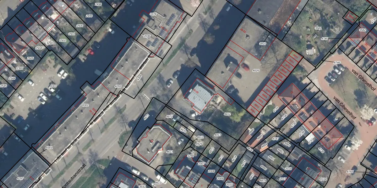 Het perceel waarop Montaubanstraat 20 staat heeft een oppervlakte van 835 m². Dit is een groot perceel. De perceeloppervlakte wordt geregistreerd door het Kadaster. Gedetailleerde informatie over de maten van dit perceel kunt u vinden in het rapport Kadastrale kaart met maatvoering van Montaubanstraat 20.