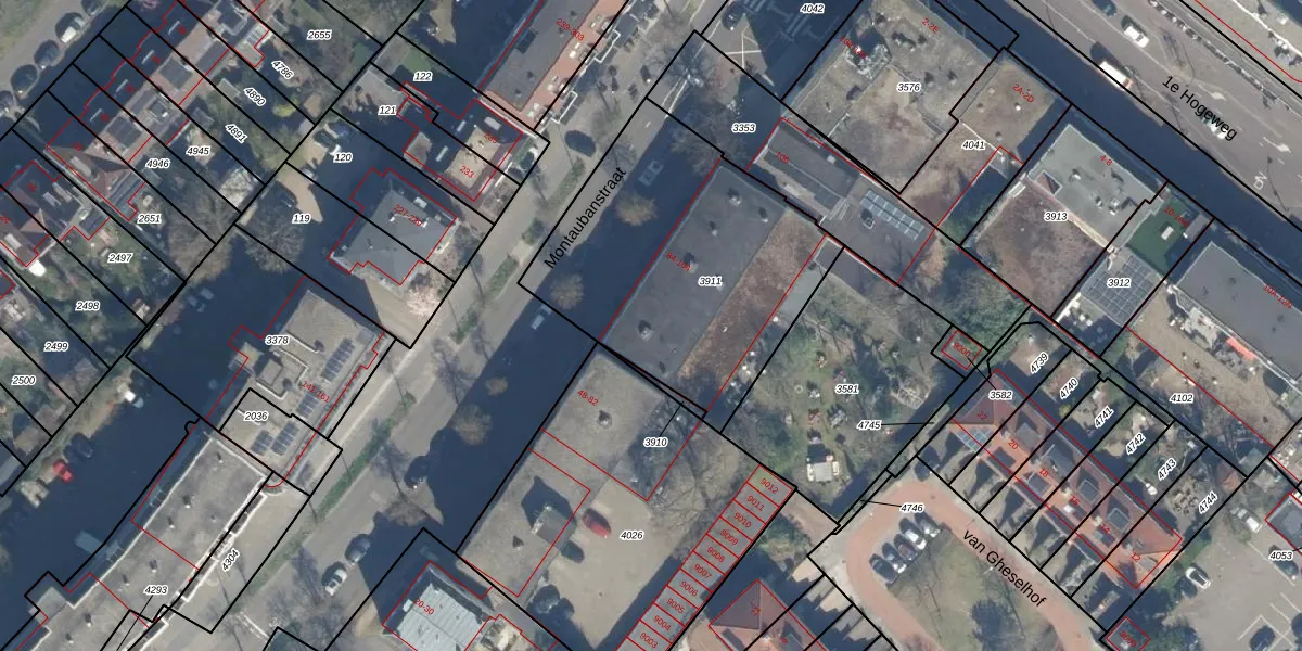Het perceel waarop Montaubanstraat 88 staat heeft een oppervlakte van 1312 m². Dit is een zeer groot perceel. De perceeloppervlakte wordt geregistreerd door het Kadaster. Gedetailleerde informatie over de maten van dit perceel kunt u vinden in het rapport Kadastrale kaart met maatvoering van Montaubanstraat 88.