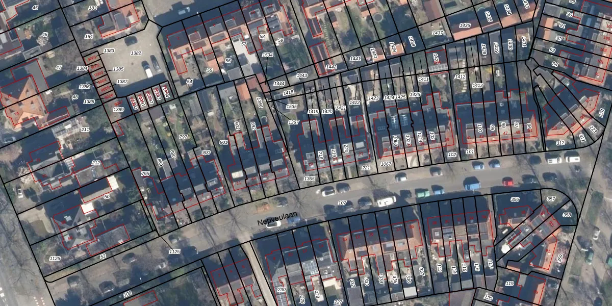 Het perceel waarop Nepveulaan 19 staat heeft een oppervlakte van 258 m². Dit is een middelgroot perceel. De perceeloppervlakte wordt geregistreerd door het Kadaster. Gedetailleerde informatie over de maten van dit perceel kunt u vinden in het rapport Kadastrale kaart met maatvoering van Nepveulaan 19.