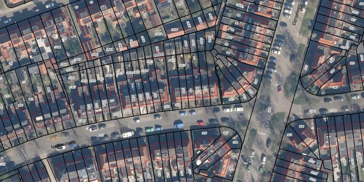 Het perceel waarop Nepveulaan 43 staat heeft een oppervlakte van 120 m². Dit is een middelgroot perceel. De perceeloppervlakte wordt geregistreerd door het Kadaster. Gedetailleerde informatie over de maten van dit perceel kunt u vinden in het rapport Kadastrale kaart met maatvoering van Nepveulaan 43.
