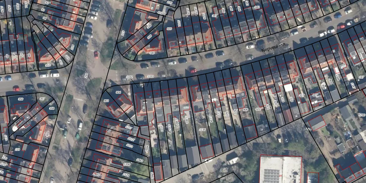 Het perceel waarop Nepveulaan 54 staat heeft een oppervlakte van 345 m². Dit is een groot perceel. De perceeloppervlakte wordt geregistreerd door het Kadaster. Gedetailleerde informatie over de maten van dit perceel kunt u vinden in het rapport Kadastrale kaart met maatvoering van Nepveulaan 54.