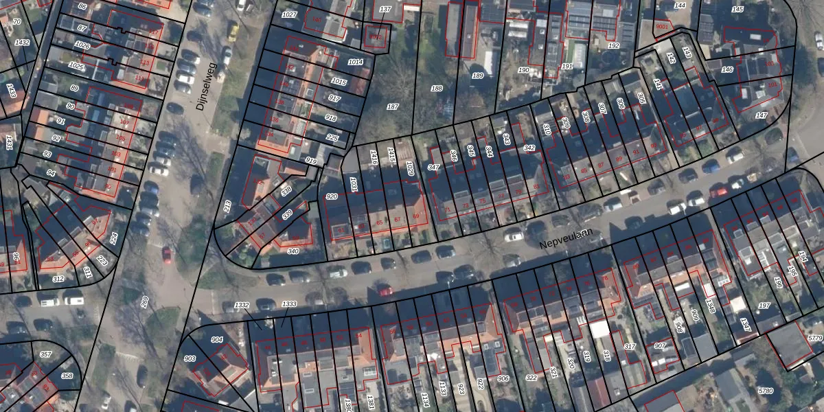 Het perceel waarop Nepveulaan 69 staat heeft een oppervlakte van 145 m². Dit is een middelgroot perceel. De perceeloppervlakte wordt geregistreerd door het Kadaster. Gedetailleerde informatie over de maten van dit perceel kunt u vinden in het rapport Kadastrale kaart met maatvoering van Nepveulaan 69.