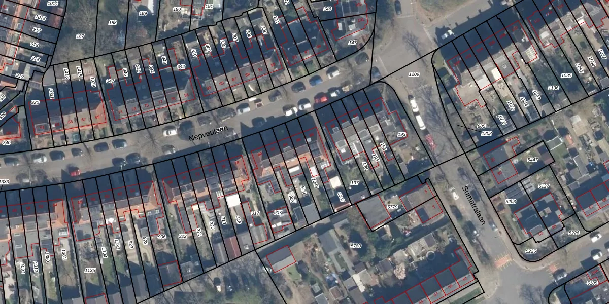 Het perceel waarop Nepveulaan 86 staat heeft een oppervlakte van 161 m². Dit is een middelgroot perceel. De perceeloppervlakte wordt geregistreerd door het Kadaster. Gedetailleerde informatie over de maten van dit perceel kunt u vinden in het rapport Kadastrale kaart met maatvoering van Nepveulaan 86.