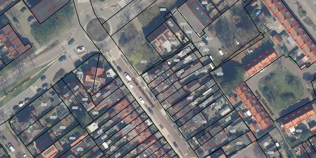 Gebruik de zoekbalk of klik op een perceel voor informatie over de adressen binnen dit perceel.