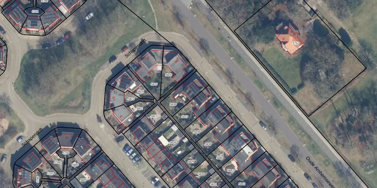Oude Arnhemseweg 381 is gelegen op kadastraal perceel ZEI00N5836. Deze kadastrale aanduiding is uniek en wordt gebruikt door het Kadaster om eigendomsrechten en andere zakelijke rechten vast te leggen. Het perceel maakt onderdeel uit van de kadastrale gemeente Zeist.