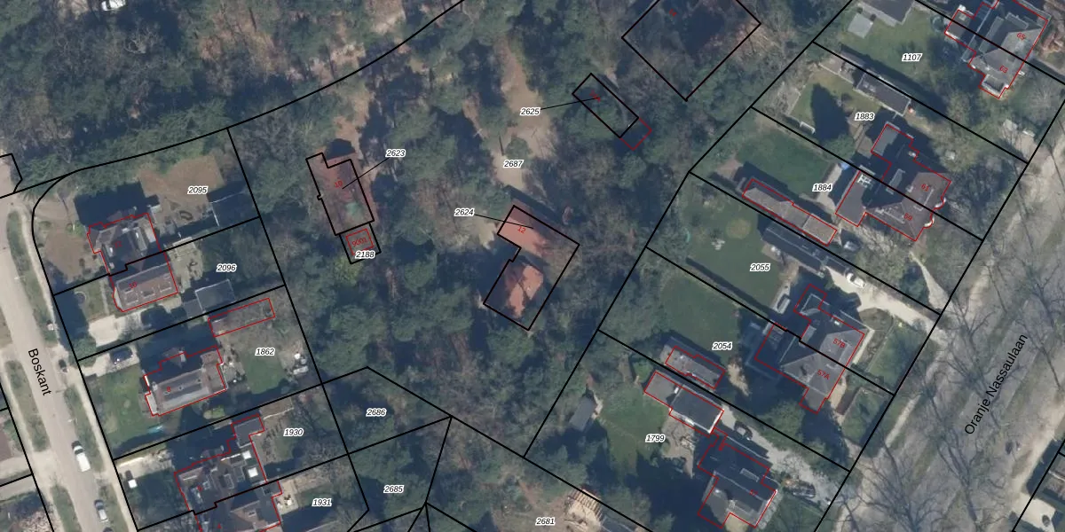 Het adres is gelegen op perceel 2624 in de sectie E en de kadastrale gemeente Zeist. De kadastrale aanduiding is aldus ZEI00-E-2624. Het perceel is kleiner dan gemiddeld in Zeist. Het perceel is 209 m² groot, terwijl het gemiddelde ligt op 2183,32 m². Het grootste perceel in de kadastrale gemeente is 1,78 km². Het kleinste perceel heeft een oppervlakte van 0 m². Op het perceel bevinden zich geen andere adressen. De laatste wijziging in het de Basisregistratie Kadaster (BRK) was op 16-03-2001.