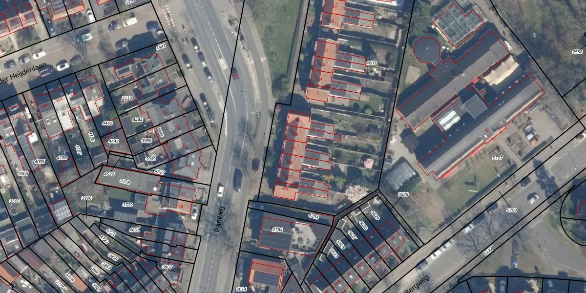 Het perceel waarop Panweg 16 staat heeft een oppervlakte van 4505 m². Dit is een zeer groot perceel. De perceeloppervlakte wordt geregistreerd door het Kadaster. Gedetailleerde informatie over de maten van dit perceel kunt u vinden in het rapport Kadastrale kaart met maatvoering van Panweg 16.