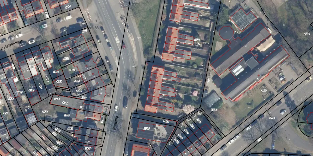 Het perceel waarop Panweg 18 staat heeft een oppervlakte van 4505 m². Dit is een zeer groot perceel. De perceeloppervlakte wordt geregistreerd door het Kadaster. Gedetailleerde informatie over de maten van dit perceel kunt u vinden in het rapport Kadastrale kaart met maatvoering van Panweg 18.