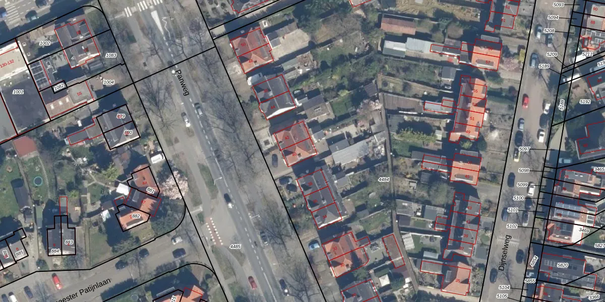 Het perceel waarop Panweg 40 staat heeft een oppervlakte van 1,0 ha. Dit is een zeer groot perceel. De perceeloppervlakte wordt geregistreerd door het Kadaster. Gedetailleerde informatie over de maten van dit perceel kunt u vinden in het rapport Kadastrale kaart met maatvoering van Panweg 40.