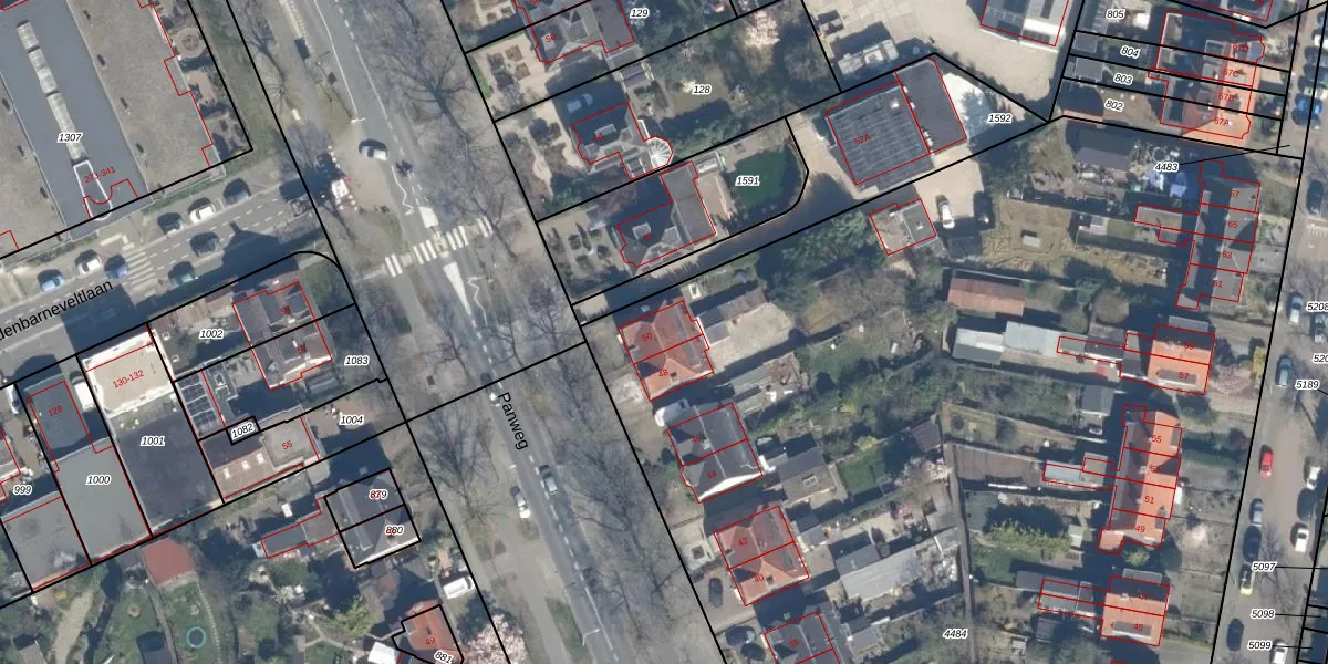 Panweg 50 is gelegen op kadastraal perceel ZEI00M4484. Deze kadastrale aanduiding is uniek en wordt gebruikt door het Kadaster om eigendomsrechten en andere zakelijke rechten vast te leggen. Het perceel maakt onderdeel uit van de kadastrale gemeente Zeist.