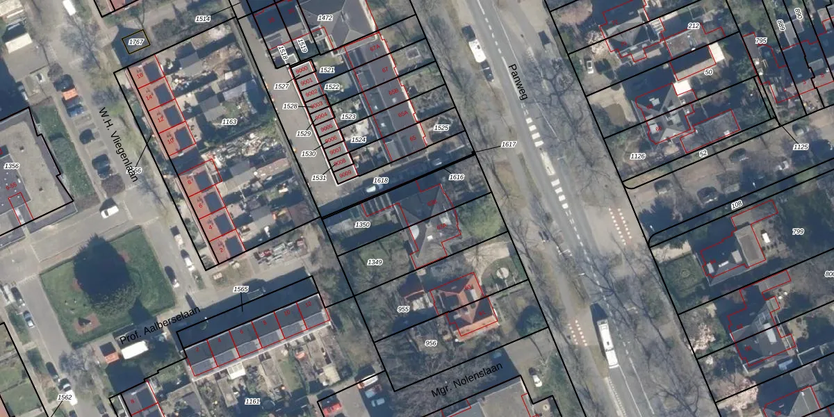 Panweg 63-B is gelegen op kadastraal perceel ZEI00P1350. Deze kadastrale aanduiding is uniek en wordt gebruikt door het Kadaster om eigendomsrechten en andere zakelijke rechten vast te leggen. Het perceel maakt onderdeel uit van de kadastrale gemeente Zeist.