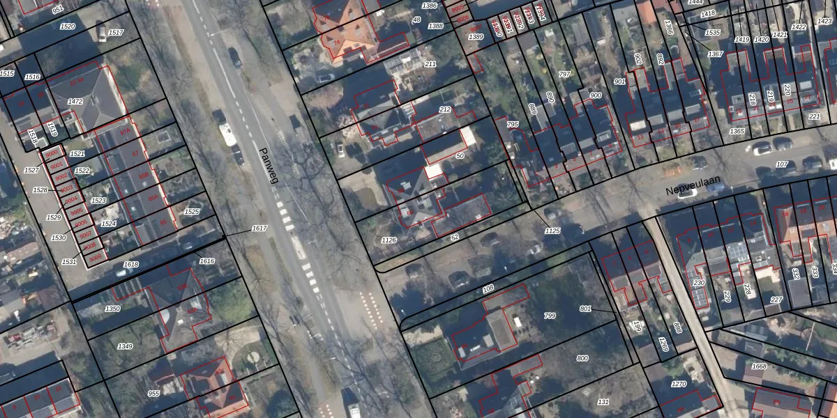 Het perceel waarop Panweg 66 staat heeft een oppervlakte van 430 m². Dit is een groot perceel. De perceeloppervlakte wordt geregistreerd door het Kadaster. Gedetailleerde informatie over de maten van dit perceel kunt u vinden in het rapport Kadastrale kaart met maatvoering van Panweg 66.