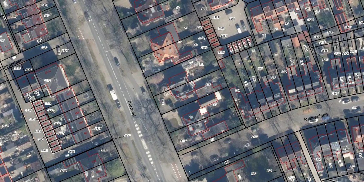 Gebruik de zoekbalk of klik op een perceel voor informatie over de adressen binnen dit perceel.