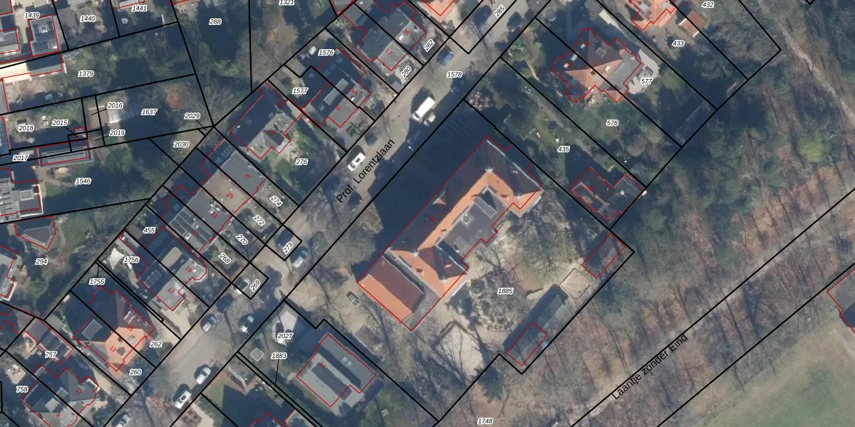 Prof. Lorentzlaan 16 is gelegen op kadastraal perceel ZEI00I1885. Deze kadastrale aanduiding is uniek en wordt gebruikt door het Kadaster om eigendomsrechten en andere zakelijke rechten vast te leggen. Het perceel maakt onderdeel uit van de kadastrale gemeente Zeist.