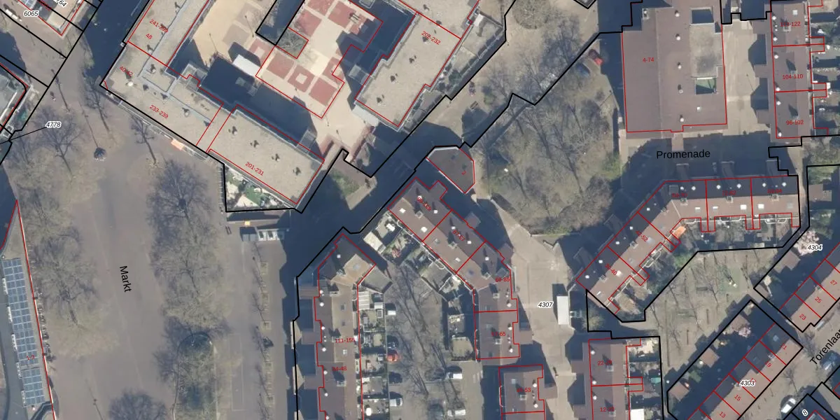 Het perceel waarop Promenade 101 staat heeft een oppervlakte van 1,1 ha. Dit is een zeer groot perceel. De perceeloppervlakte wordt geregistreerd door het Kadaster. Gedetailleerde informatie over de maten van dit perceel kunt u vinden in het rapport Kadastrale kaart met maatvoering van Promenade 101.
