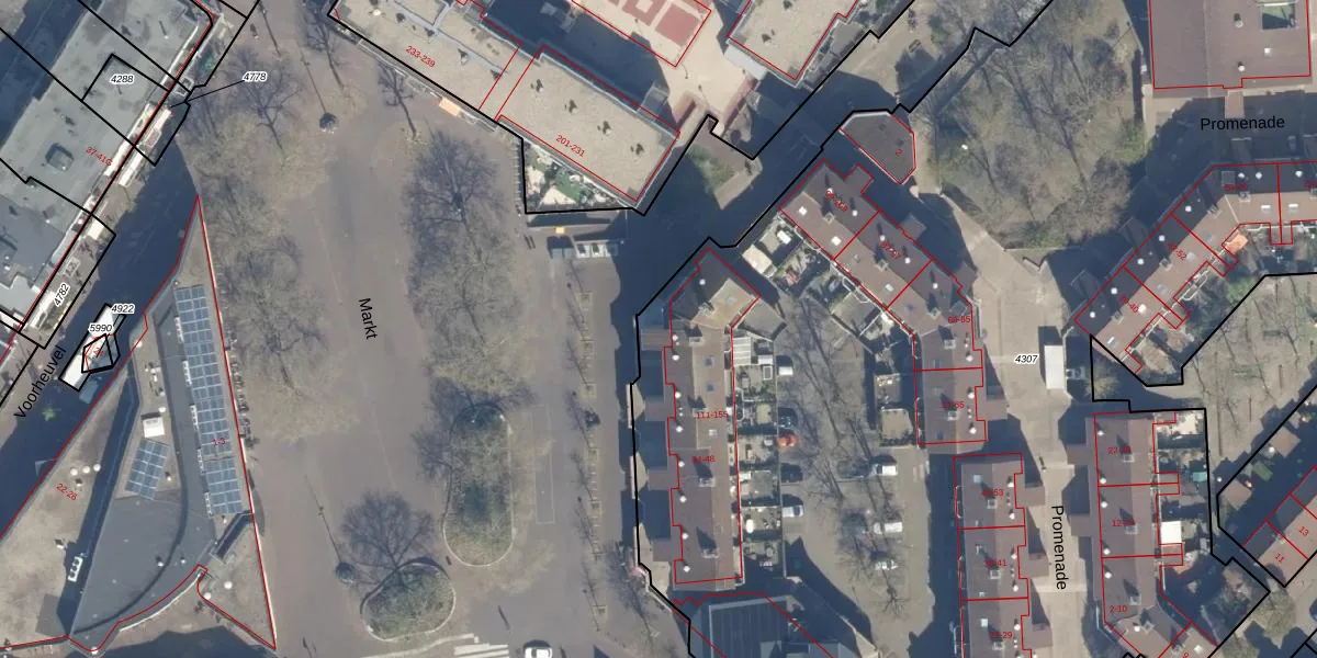 Het perceel waarop Promenade 111 staat heeft een oppervlakte van 1,1 ha. Dit is een zeer groot perceel. De perceeloppervlakte wordt geregistreerd door het Kadaster. Gedetailleerde informatie over de maten van dit perceel kunt u vinden in het rapport Kadastrale kaart met maatvoering van Promenade 111.