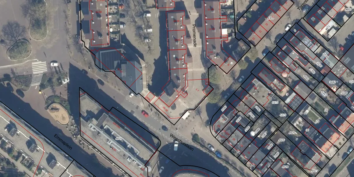 Het perceel waarop Promenade 17 staat heeft een oppervlakte van 1,1 ha. Dit is een zeer groot perceel. De perceeloppervlakte wordt geregistreerd door het Kadaster. Gedetailleerde informatie over de maten van dit perceel kunt u vinden in het rapport Kadastrale kaart met maatvoering van Promenade 17.