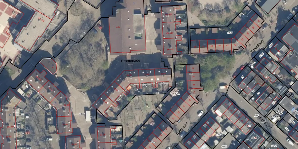 Het perceel waarop Promenade 80 staat heeft een oppervlakte van 1,1 ha. Dit is een zeer groot perceel. De perceeloppervlakte wordt geregistreerd door het Kadaster. Gedetailleerde informatie over de maten van dit perceel kunt u vinden in het rapport Kadastrale kaart met maatvoering van Promenade 80.