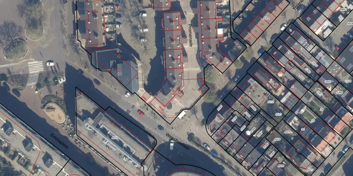 Het perceel waarop Promenade 9 staat heeft een oppervlakte van 1,1 ha. Dit is een zeer groot perceel. De perceeloppervlakte wordt geregistreerd door het Kadaster. Gedetailleerde informatie over de maten van dit perceel kunt u vinden in het rapport Kadastrale kaart met maatvoering van Promenade 9.