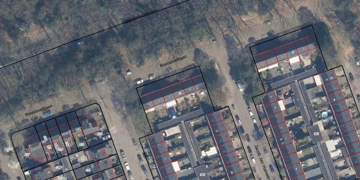 Het perceel waarop Rooseveltlaan 20 staat heeft een oppervlakte van 4255 m². Dit is een zeer groot perceel. De perceeloppervlakte wordt geregistreerd door het Kadaster. Gedetailleerde informatie over de maten van dit perceel kunt u vinden in het rapport Kadastrale kaart met maatvoering van Rooseveltlaan 20.