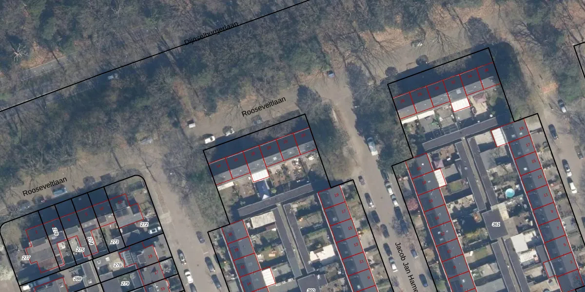 Het perceel waarop Rooseveltlaan 22 staat heeft een oppervlakte van 4255 m². Dit is een zeer groot perceel. De perceeloppervlakte wordt geregistreerd door het Kadaster. Gedetailleerde informatie over de maten van dit perceel kunt u vinden in het rapport Kadastrale kaart met maatvoering van Rooseveltlaan 22.