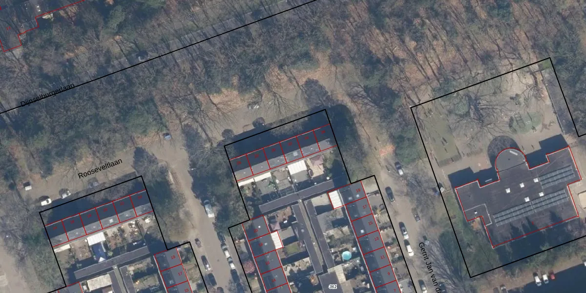 Het perceel waarop Rooseveltlaan 32 staat heeft een oppervlakte van 4260 m². Dit is een zeer groot perceel. De perceeloppervlakte wordt geregistreerd door het Kadaster. Gedetailleerde informatie over de maten van dit perceel kunt u vinden in het rapport Kadastrale kaart met maatvoering van Rooseveltlaan 32.