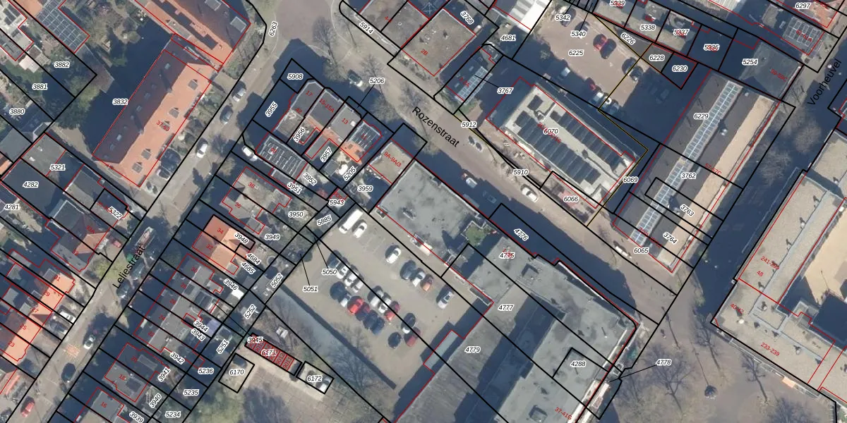 Het perceel waarop Rozenstraat 5-B staat heeft een oppervlakte van 804 m². Dit is een groot perceel. De perceeloppervlakte wordt geregistreerd door het Kadaster. Gedetailleerde informatie over de maten van dit perceel kunt u vinden in het rapport Kadastrale kaart met maatvoering van Rozenstraat 5-B.