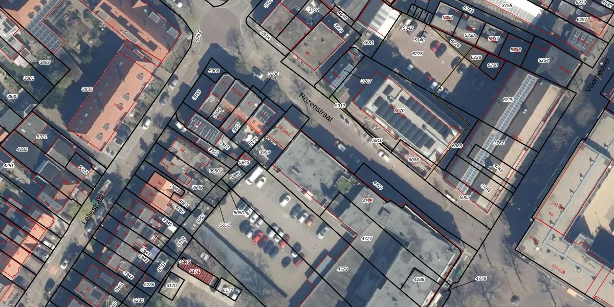 Het perceel waarop Rozenstraat 5-D staat heeft een oppervlakte van 804 m². Dit is een groot perceel. De perceeloppervlakte wordt geregistreerd door het Kadaster. Gedetailleerde informatie over de maten van dit perceel kunt u vinden in het rapport Kadastrale kaart met maatvoering van Rozenstraat 5-D.