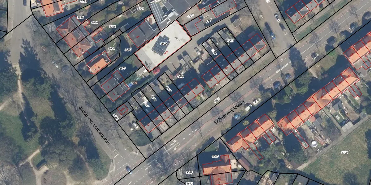 Het perceel waarop Schaerweijdelaan 57 staat heeft een oppervlakte van 1965 m². Dit is een zeer groot perceel. De perceeloppervlakte wordt geregistreerd door het Kadaster. Gedetailleerde informatie over de maten van dit perceel kunt u vinden in het rapport Kadastrale kaart met maatvoering van Schaerweijdelaan 57.