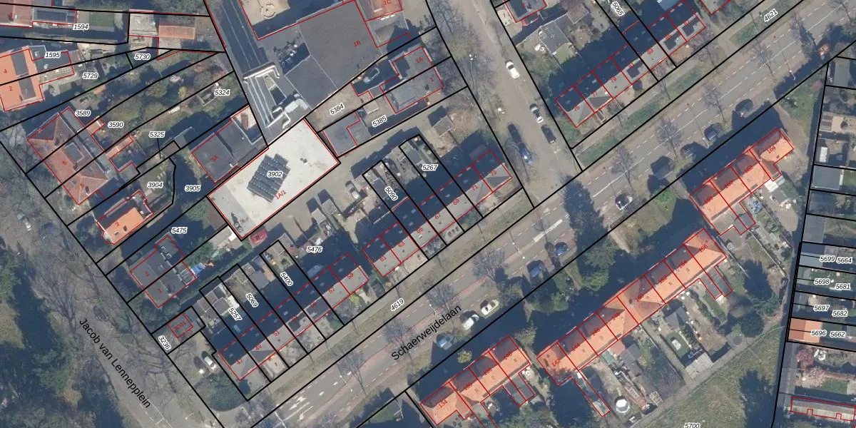 Het perceel waarop Schaerweijdelaan 67 staat heeft een oppervlakte van 1965 m². Dit is een zeer groot perceel. De perceeloppervlakte wordt geregistreerd door het Kadaster. Gedetailleerde informatie over de maten van dit perceel kunt u vinden in het rapport Kadastrale kaart met maatvoering van Schaerweijdelaan 67.