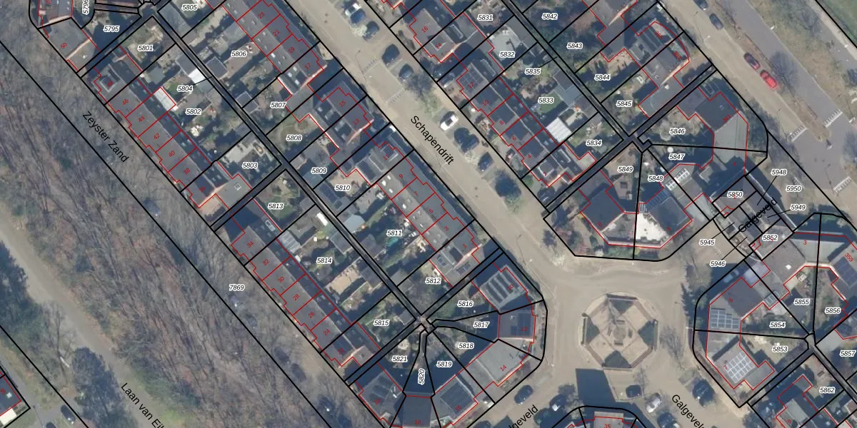 Schapendrift 5 is gelegen op kadastraal perceel ZEI00N5811. Deze kadastrale aanduiding is uniek en wordt gebruikt door het Kadaster om eigendomsrechten en andere zakelijke rechten vast te leggen. Het perceel maakt onderdeel uit van de kadastrale gemeente Zeist.