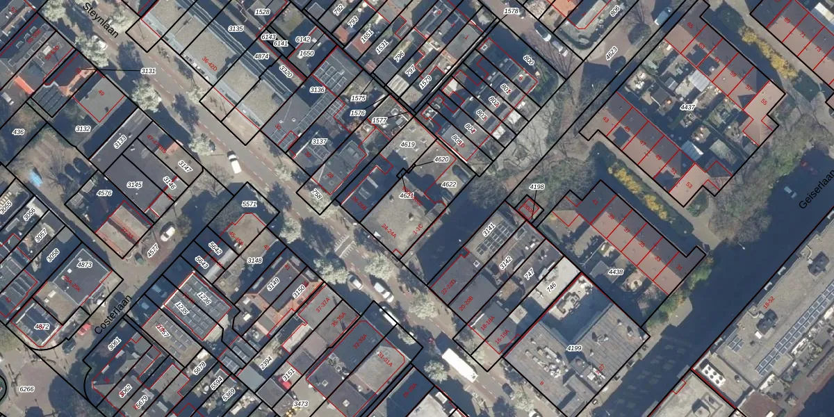 Het adres is gelegen op perceel 4622 in de sectie H en de kadastrale gemeente Zeist. De kadastrale aanduiding is aldus ZEI00-H-4622. Het perceel is 359 m² groot. Dat is kleiner dan de gemiddelde perceeloppervlakte in Zeist, dat op 2184,88 m² ligt. Het grootste perceel in de kadastrale gemeente is 1,78 km². Het kleinste perceel heeft een oppervlakte van 0 m². Op het perceel liggen in totaal 9 adressen. In de Basisregistratie Kadaster (BRK) werden de grenzen van het perceel geregistreerd op 19-09-1997.