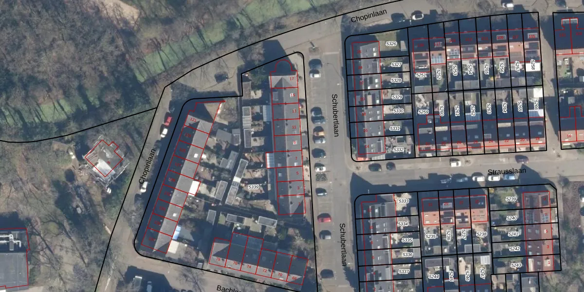 Het perceel waarop Schubertlaan 9 staat heeft een oppervlakte van 3507 m². Dit is een zeer groot perceel. De perceeloppervlakte wordt geregistreerd door het Kadaster. Gedetailleerde informatie over de maten van dit perceel kunt u vinden in het rapport Kadastrale kaart met maatvoering van Schubertlaan 9.