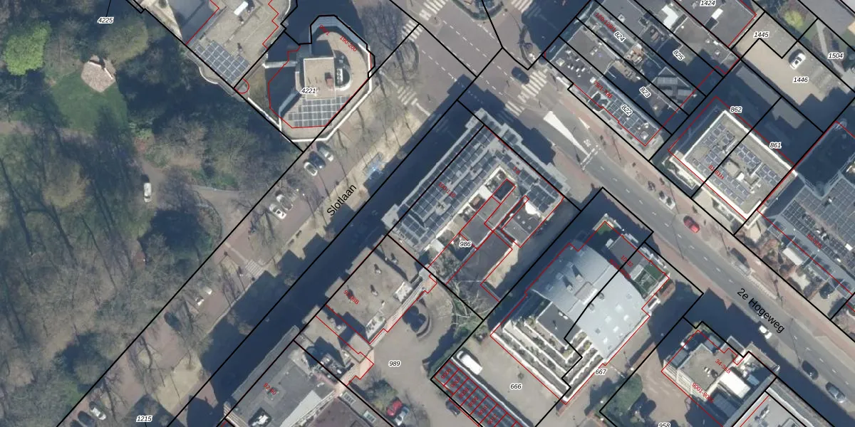Het perceel waarop Slotlaan 106 staat heeft een oppervlakte van 1041 m². Dit is een zeer groot perceel. De perceeloppervlakte wordt geregistreerd door het Kadaster. Gedetailleerde informatie over de maten van dit perceel kunt u vinden in het rapport Kadastrale kaart met maatvoering van Slotlaan 106.