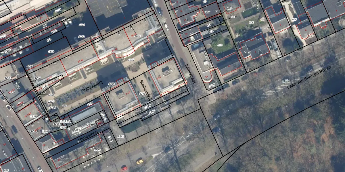 Het adres is gelegen op perceel 1243 in de sectie L en de kadastrale gemeente Zeist. De kadastrale aanduiding is aldus ZEI00-L-1243. Het perceel is kleiner dan gemiddeld in Zeist. Het perceel is 756 m² groot, terwijl het gemiddelde ligt op 2184 m². Het kleinste perceel in de kadastrale gemeente is 0 m² groot. De grootste perceeloppervlakte is 1,78 km². Op het perceel liggen in totaal 14 adressen. In de Basisregistratie Kadaster (BRK) werden de grenzen van het perceel geregistreerd op 04-02-1999.