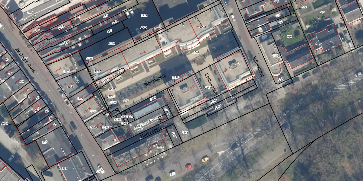 Het perceel waarop het adres ligt is ZEI00-L-1243. De afkorting 'ZEI00' staat voor kadastrale gemeente Zeist. Het perceel is 756 m² groot. Dat is kleiner dan de gemiddelde perceeloppervlakte in Zeist, dat op 2184,1 m² ligt. Het grootste perceel in de kadastrale gemeente is 1,78 km². Het kleinste perceel heeft een oppervlakte van 0 m². Op het perceel zijn 14 adressen aanwezig. De huidige grenzen van het perceel zijn digitaal in de Basisregistratie Kadaster (BRK) geregistreerd op 04-02-1999.