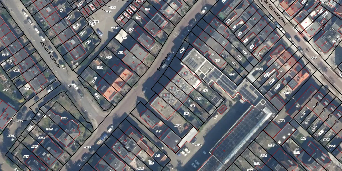 Gebruik de zoekbalk of klik op een perceel voor informatie over de adressen binnen dit perceel.