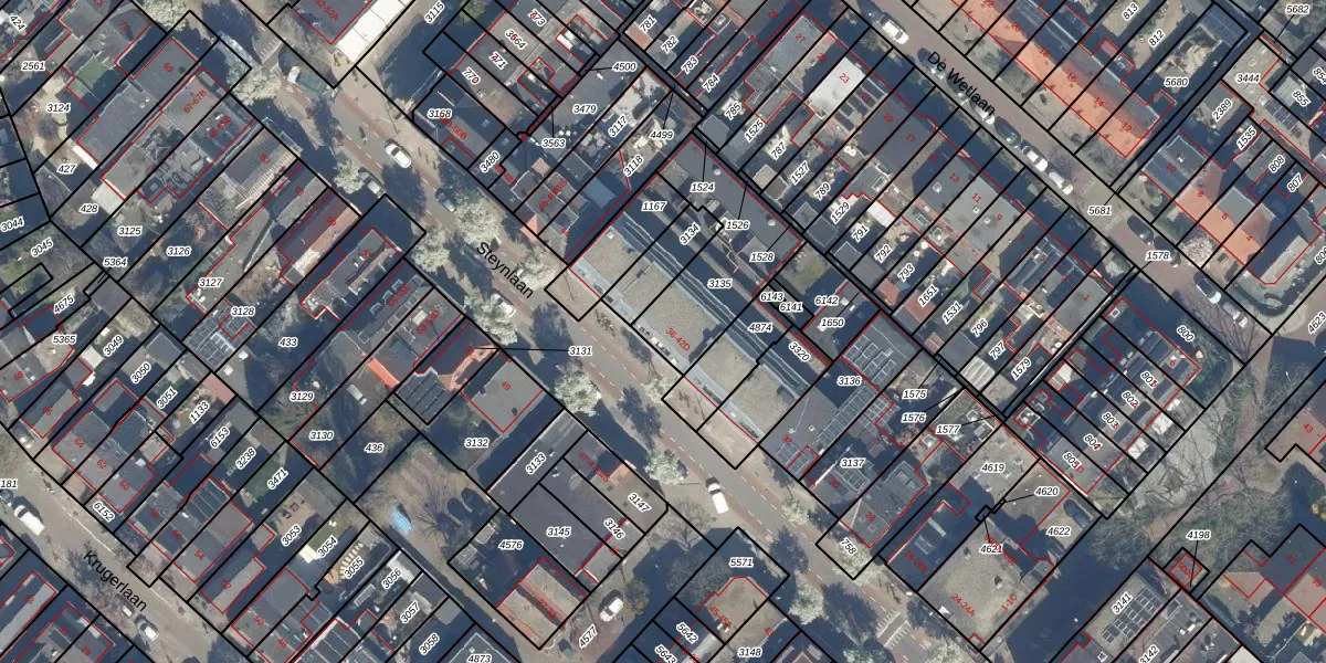 Het perceel waarop Steynlaan 36-B staat heeft een oppervlakte van 407 m². Dit is een groot perceel. De perceeloppervlakte wordt geregistreerd door het Kadaster. Gedetailleerde informatie over de maten van dit perceel kunt u vinden in het rapport Kadastrale kaart met maatvoering van Steynlaan 36-B.