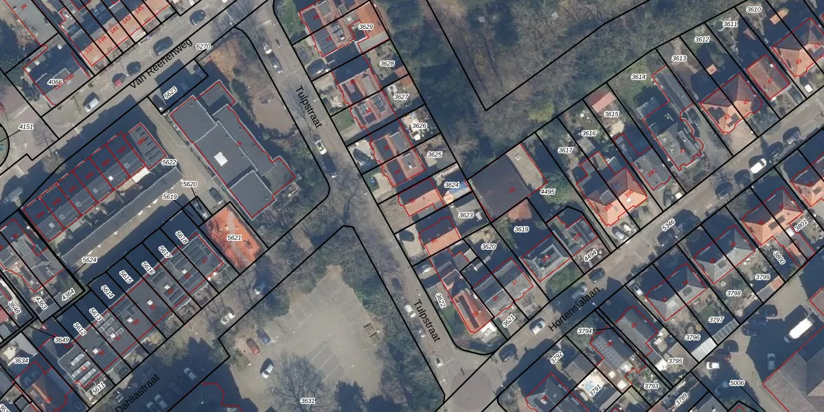 Tulpstraat 32 is gelegen op kadastraal perceel ZEI00H3624. Deze kadastrale aanduiding is uniek en wordt gebruikt door het Kadaster om eigendomsrechten en andere zakelijke rechten vast te leggen. Het perceel maakt onderdeel uit van de kadastrale gemeente Zeist.