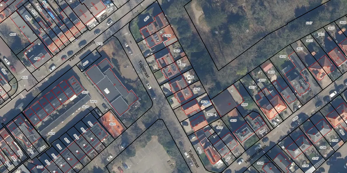 Gebruik de zoekbalk of klik op een perceel voor informatie over de adressen binnen dit perceel.