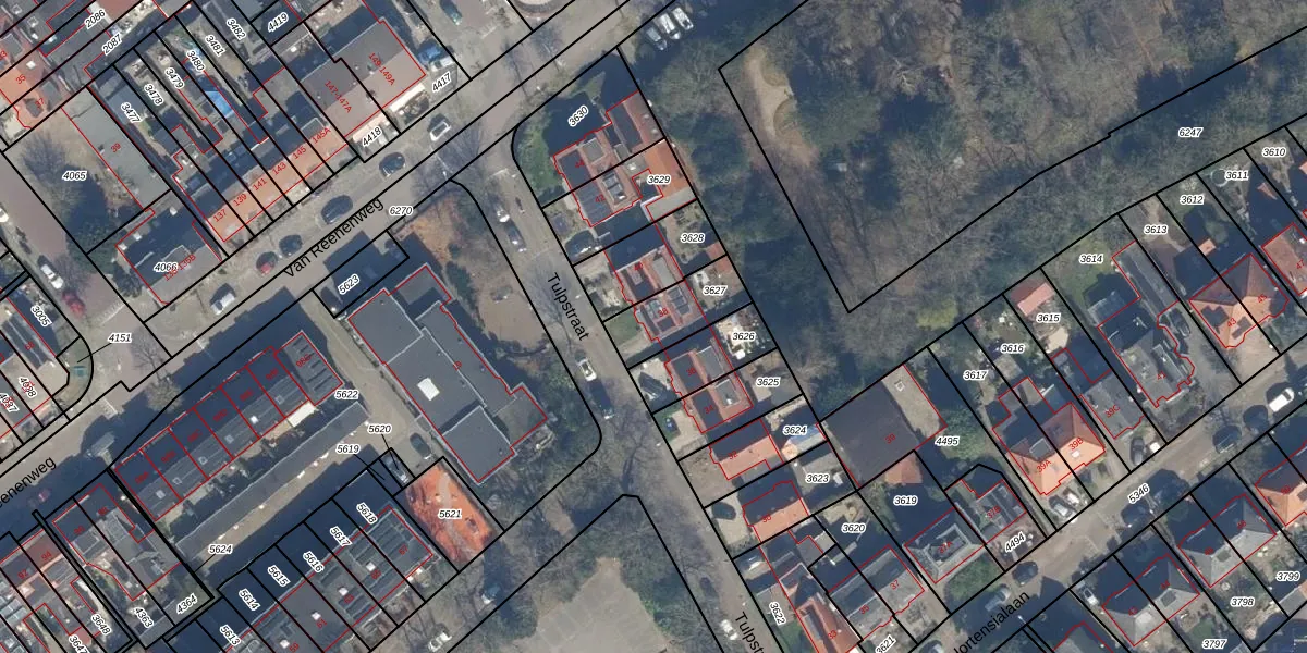 Het perceel waarop Tulpstraat 38 staat heeft een oppervlakte van 175 m². Dit is een middelgroot perceel. De perceeloppervlakte wordt geregistreerd door het Kadaster. Gedetailleerde informatie over de maten van dit perceel kunt u vinden in het rapport Kadastrale kaart met maatvoering van Tulpstraat 38.