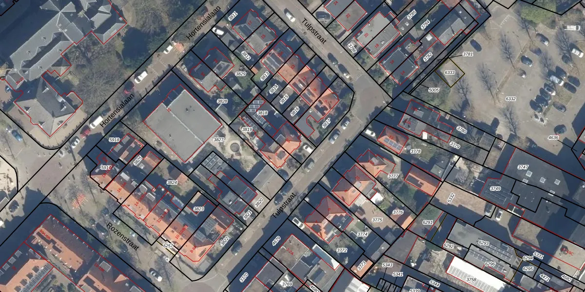 Gebruik de zoekbalk of klik op een perceel voor informatie over de adressen binnen dit perceel.