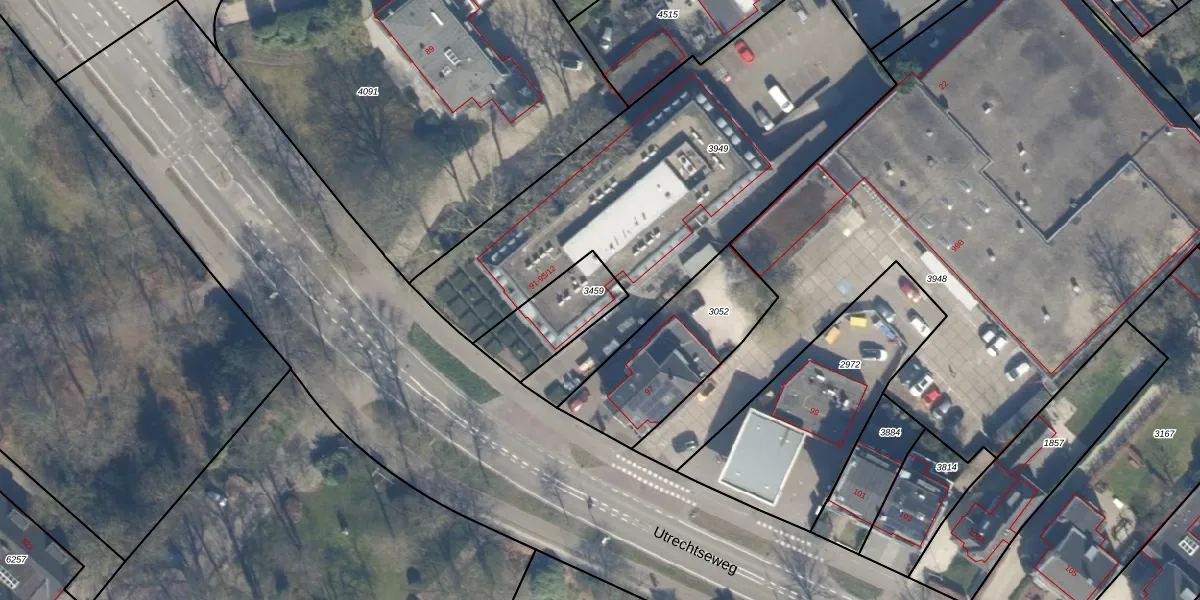 Utrechtseweg 91-1 is gelegen op kadastraal perceel ZEI00M3459. Deze kadastrale aanduiding is uniek en wordt gebruikt door het Kadaster om eigendomsrechten en andere zakelijke rechten vast te leggen. Het perceel maakt onderdeel uit van de kadastrale gemeente Zeist.