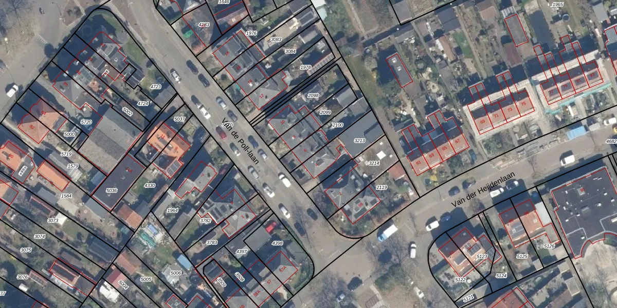Van de Poll-laan 6 is gelegen op kadastraal perceel ZEI00M2100. Deze kadastrale aanduiding is uniek en wordt gebruikt door het Kadaster om eigendomsrechten en andere zakelijke rechten vast te leggen. Het perceel maakt onderdeel uit van de kadastrale gemeente Zeist.